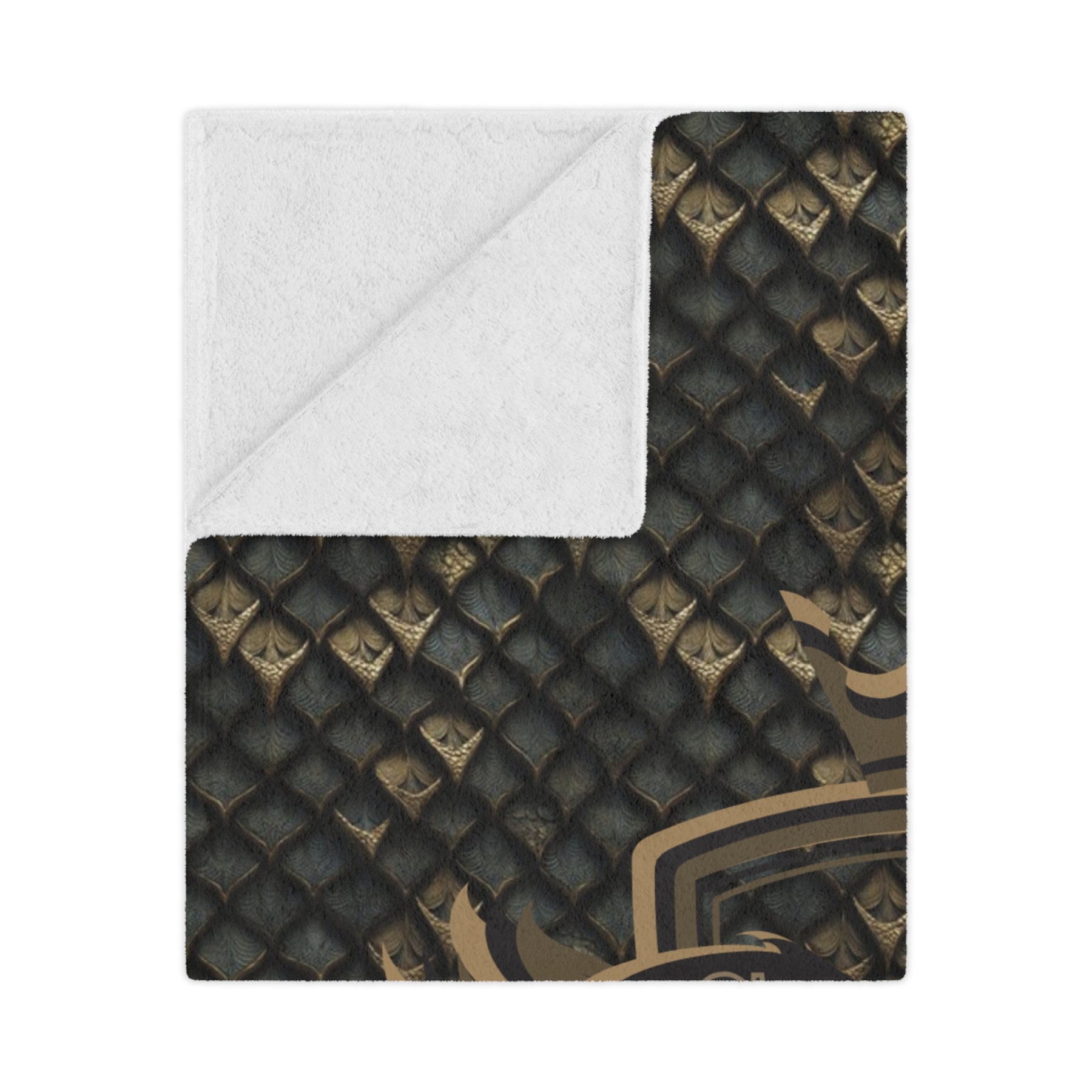 Ultra-soft 50 in x 60 in reading blanket with black & gold dragon scale design