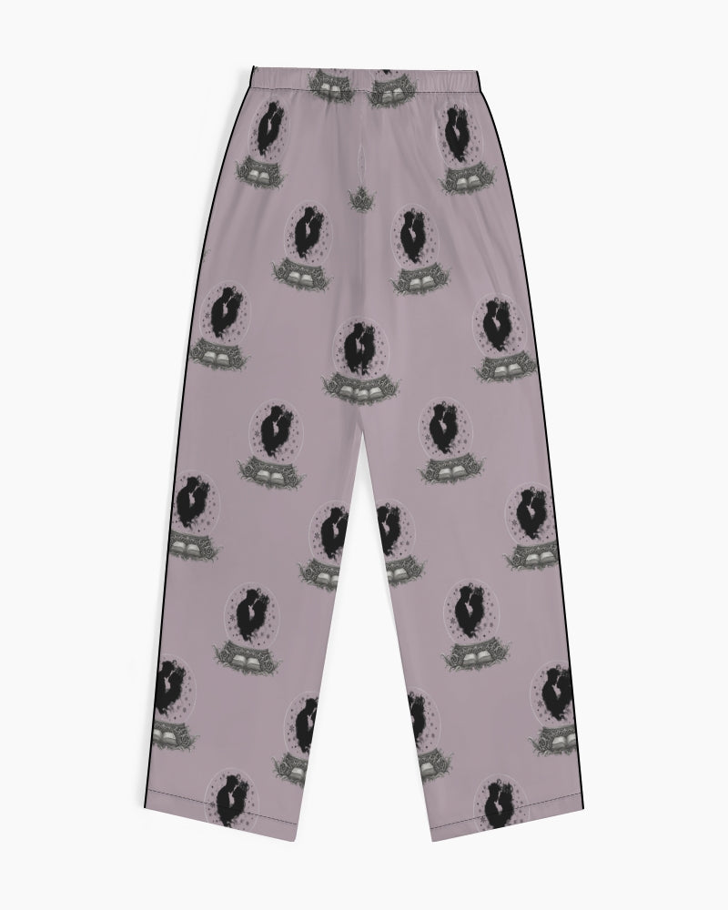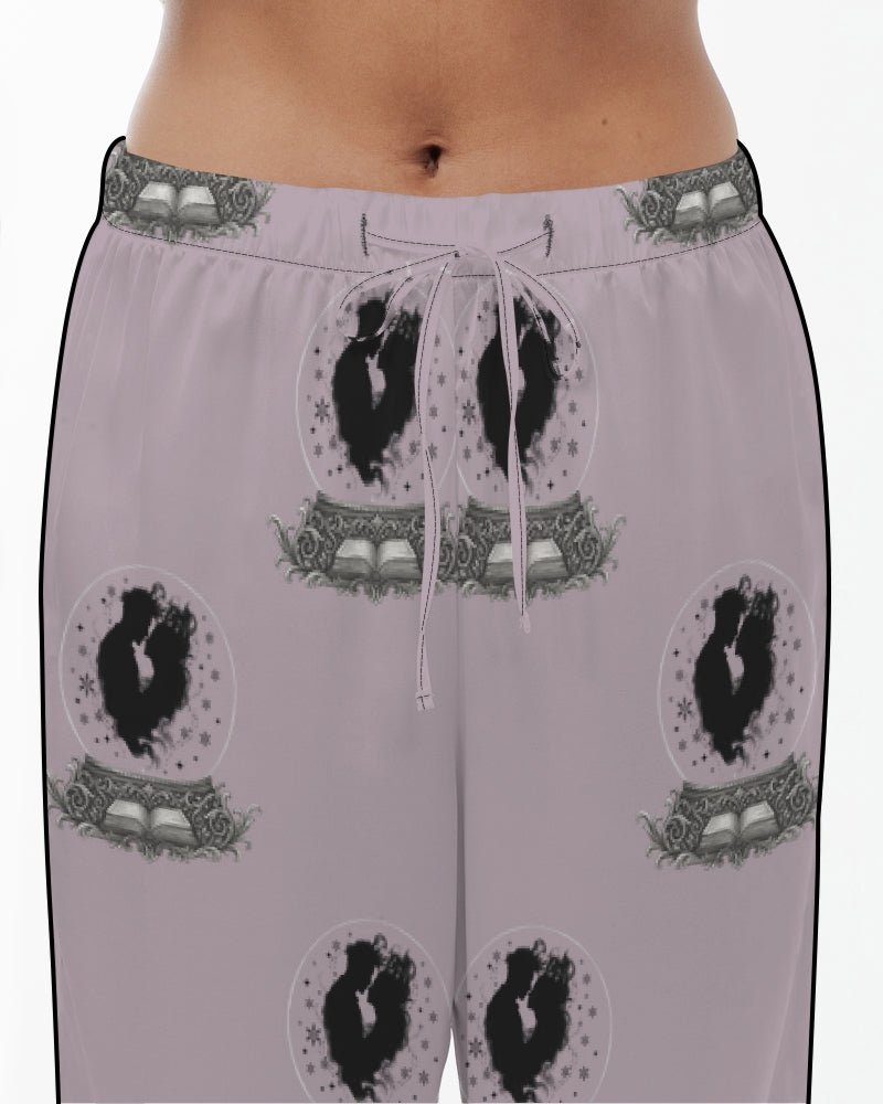 Slip into luxury with the All I Want for Christmas is a Shadowdaddy Satin Pajama Pants, a holiday must-have for every romantasy reader. Crafted from buttery-soft satin, these dreamy buttery soft satin pants features contrast piping and our signature All I Want for Christmas is a Shadowdaddy Holiday print. The design showcases our exclusive “Shadowdaddy” artwork—an ornate, gothic-inspired silhouette within a bookish holiday snowglobe surrounded by celestial details—perfect for fans of brooding, morally-grey book boyfriends.