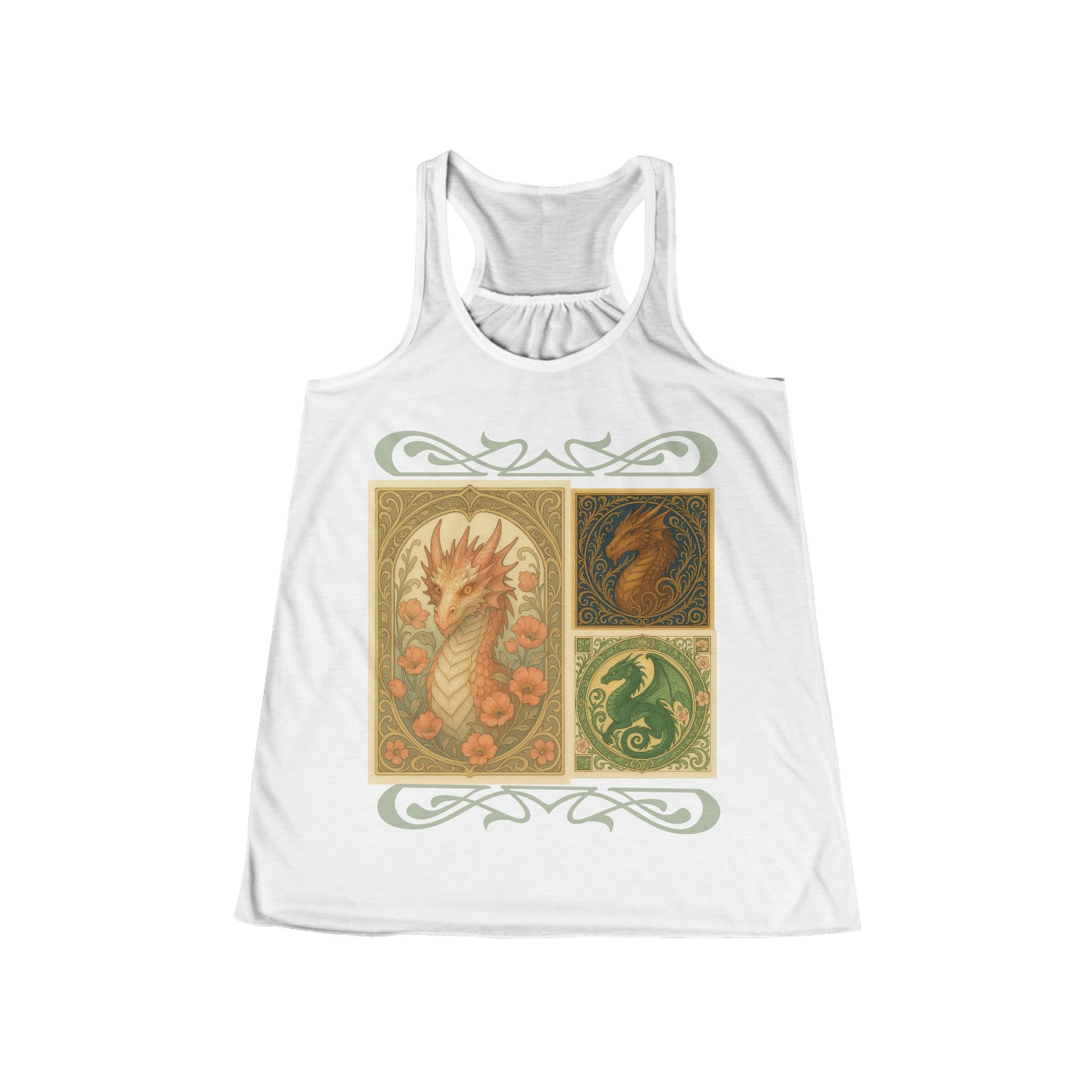 The design showcases an intricate panel of vibrant dragon artwork framed in ornate details—each dragon representing the strength, beauty, and mystery of mythical leviathans soaring through the skies. Ideal for bedtime, lazy mornings, or marathon reading sessions, this tank is equal parts stylish and comfortable.