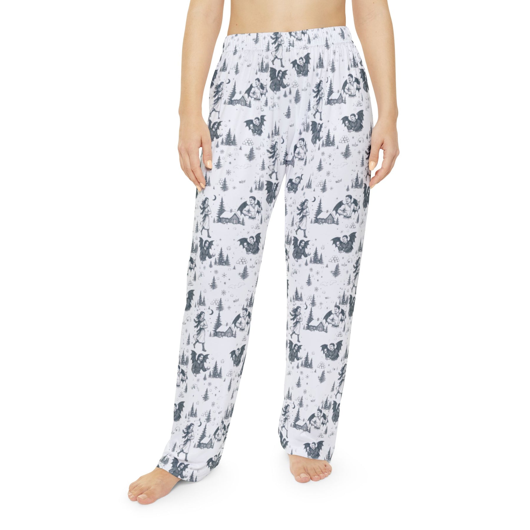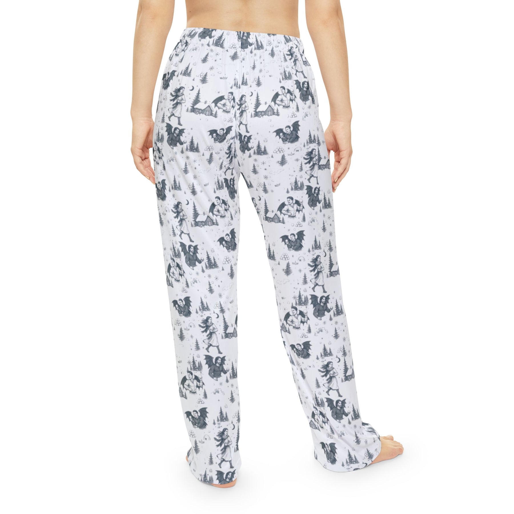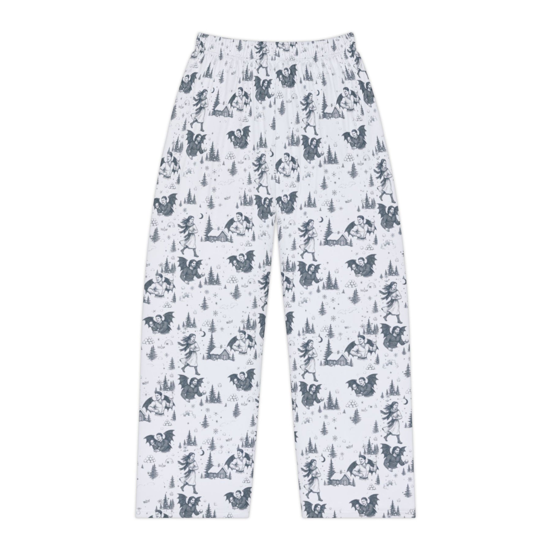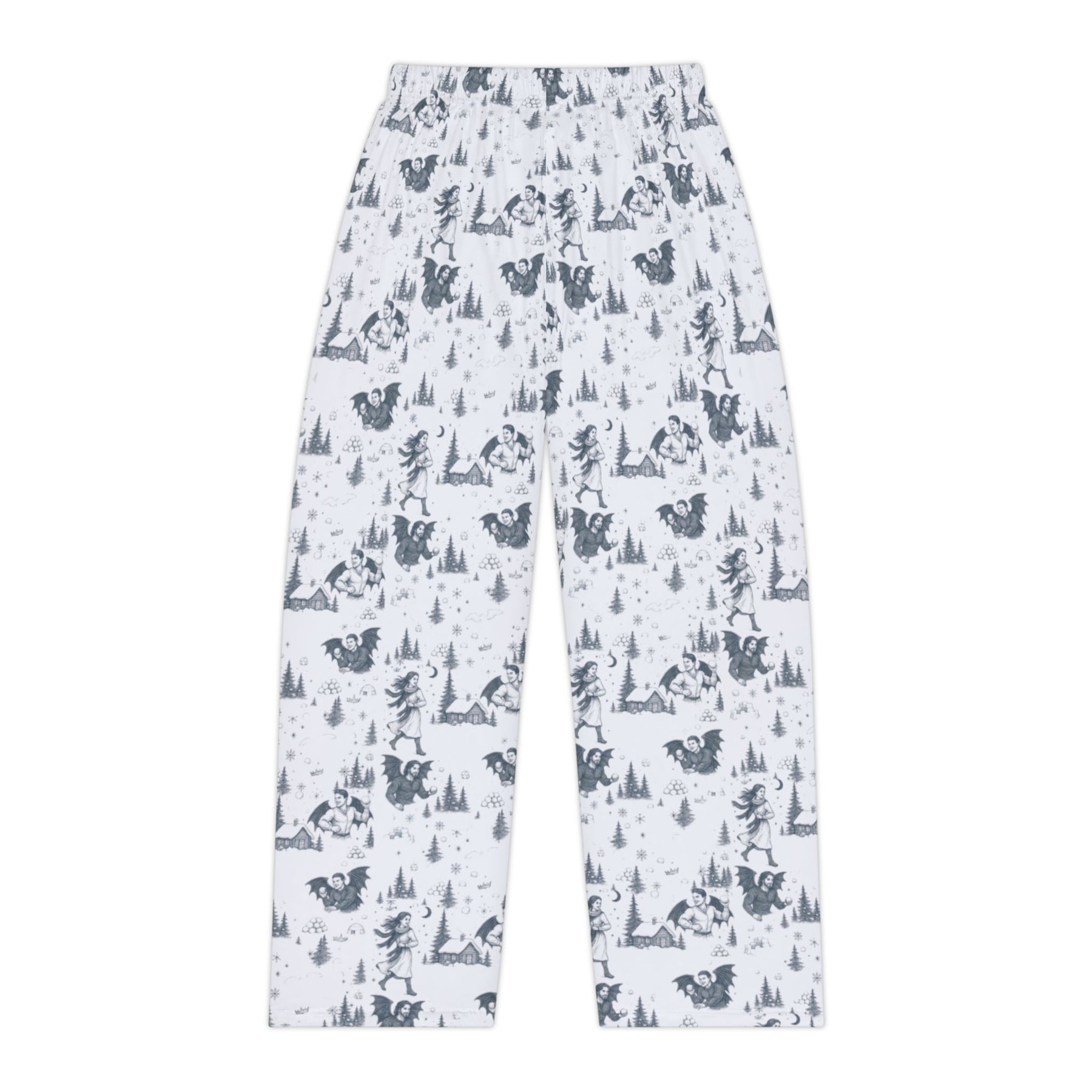 Step into a winter wonderland with our Snowball Brawl Toile Pajama Pants, exclusively from Gilded Girl Accessories. Inspired by the most iconic snowball fight in romantasy lore, these pajama bottoms feature a whimsical toile print of winged warriors, playful snowball battles, and cozy cabins tucked into enchanted evergreens.