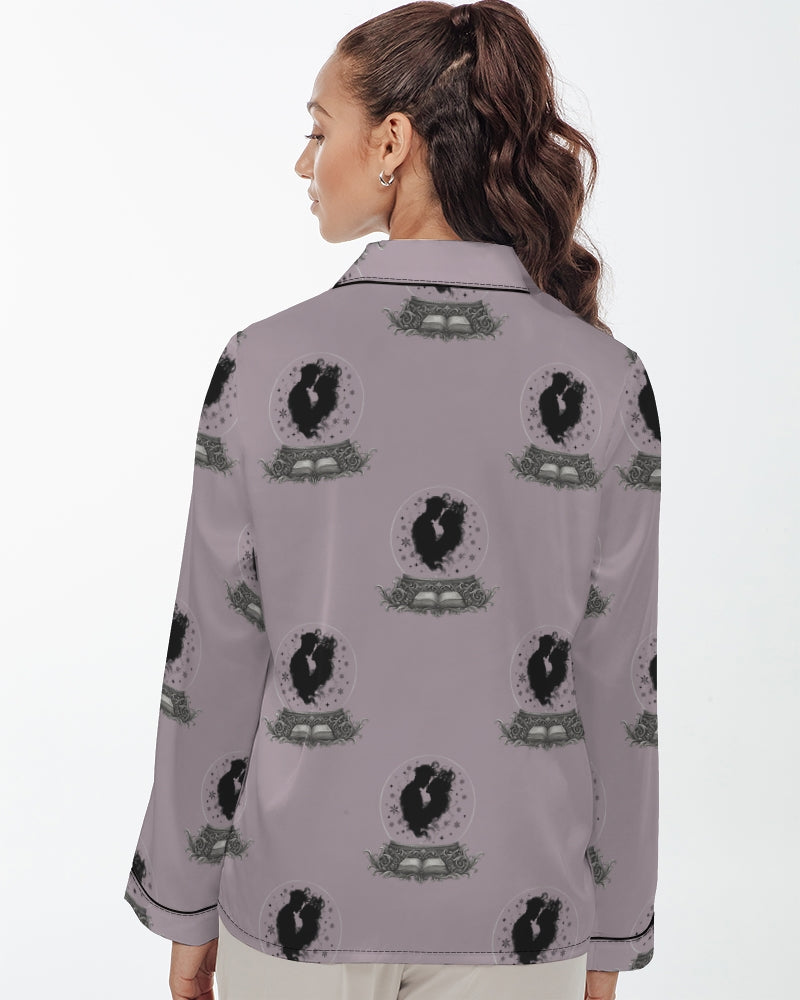 Slip into luxury with the All I Want for Christmas is a Shadowdaddy All Over Print Satin Pajama Top, a holiday must-have for every romantasy reader.