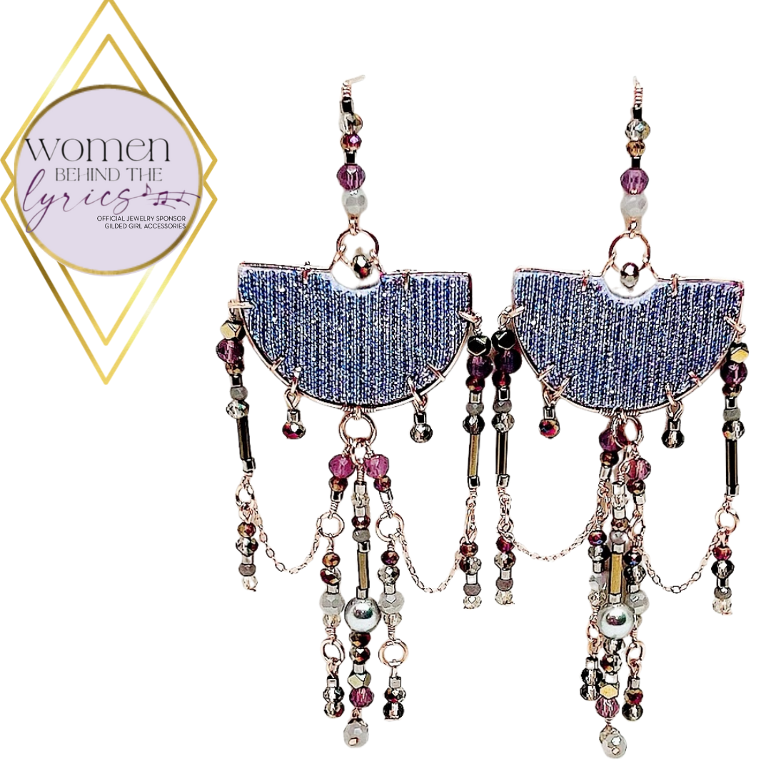 Inspired by Sarah Harralson’s fearless energy and her love of vibrant color, these earrings capture the spirit of a woman who turns every lyric into empowerment. Designed around her signature shade of purple — a hue symbolizing creativity, confidence, and transformation — they shimmer with the same magnetic presence Sarah brings to the stage. Created in collaboration with Women Behind the Lyrics, this pair is an anthem in metal and color: unapologetic, luminous, and entirely her own.