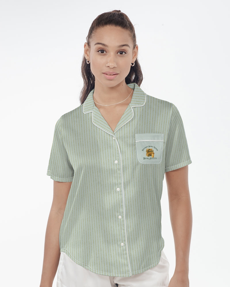 Featuring the playful Beachside Bodice Rippers Book Society artwork, this silky book lover pajama top celebrates the dramatic charm of classic bodice ripper romance novels. Whether you're curling up with a steamy beach read, relaxing after book club night, or enjoying a slow morning with coffee and your current romance novel, this bookish sleep shirt adds literary flair to your daily routine.