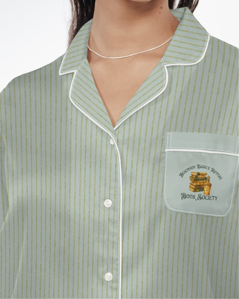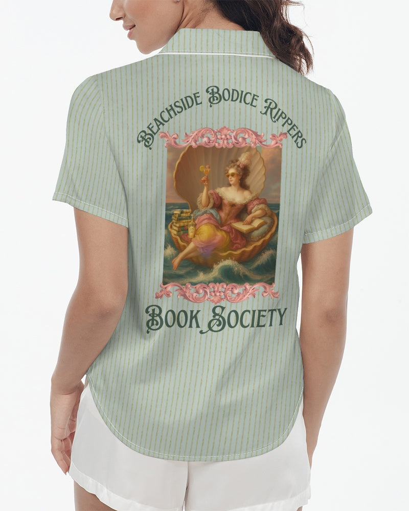 Whether you're escaping into your latest romance novel, relaxing after a long day, or searching for the perfect gift for a romance reader, the Beachside Bodice Rippers Book Society Satin Pajama Top combines luxurious comfort, playful literary style, and cozy bookish charm for readers who love their nights filled with romance and good books.