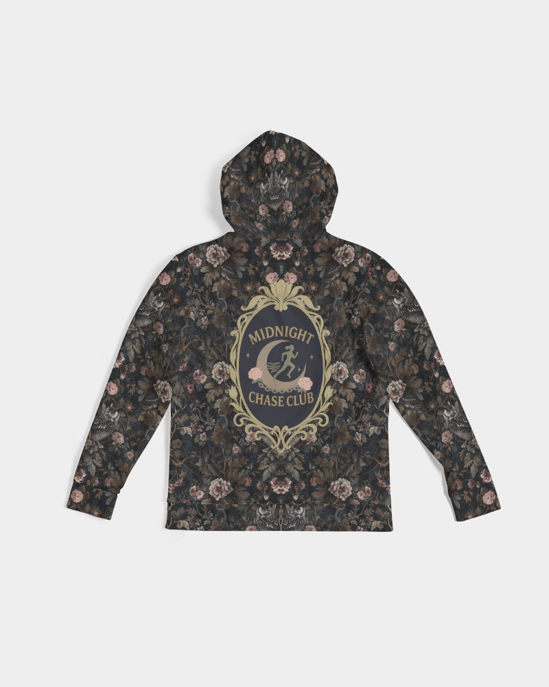 Featuring a gothic tapestry of owls, shadowed florals, and muted tones, this hoodie embodies the intensity of forbidden desire and the allure of the unknown. At the heart of this design is the exclusive Midnight Chase Club crest, a mark of loyalty for those who dare to run headfirst into the darkness and claim their own power. The detailed owl and moody blooms speak to strength, vigilance, and the kind of secrets only whispered after midnight.