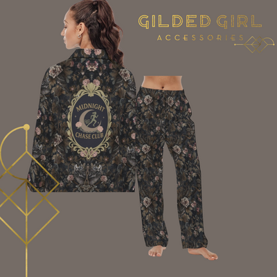 Midnight Chase Club Satin Pajamas, Dark Romance Loungewear, Bookish Loungewear, Romantasy Pajamas
