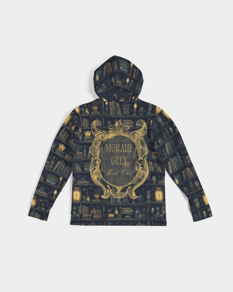 • Premium polyester hoodie featuring a silky texture and  Morally Grey Book Club graphic