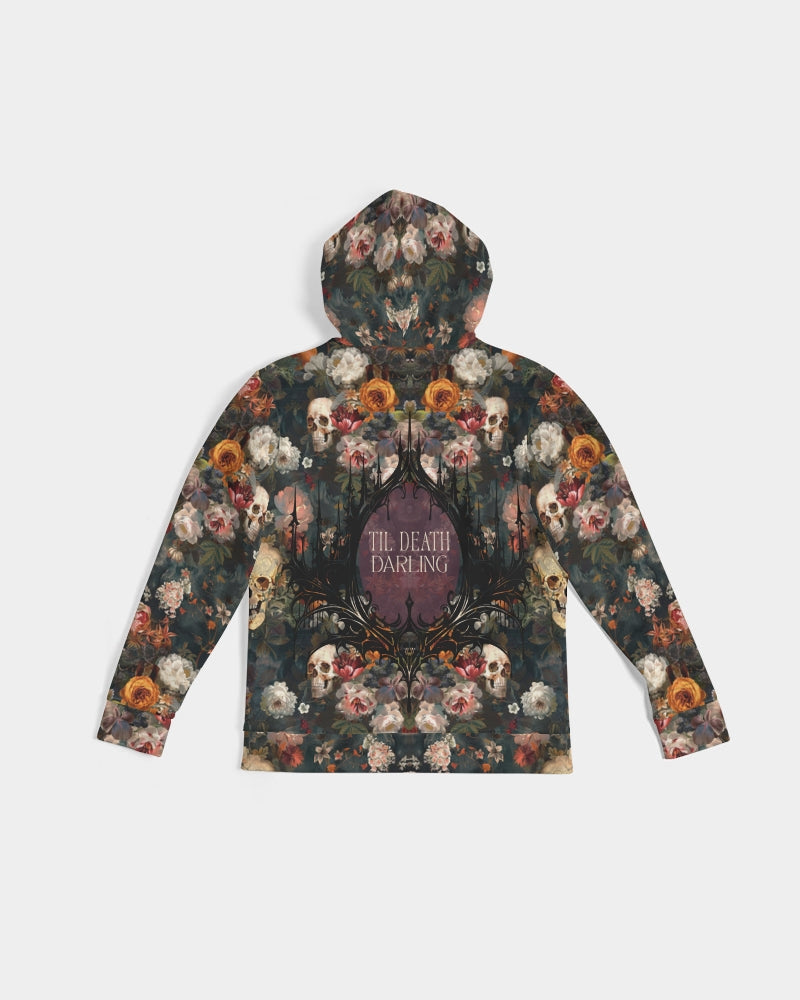 Featuring a hauntingly beautiful print of skulls, lush florals, and dark botanical details, this hoodie was designed for readers who love their stories with a hint of danger, desire, and darkness.