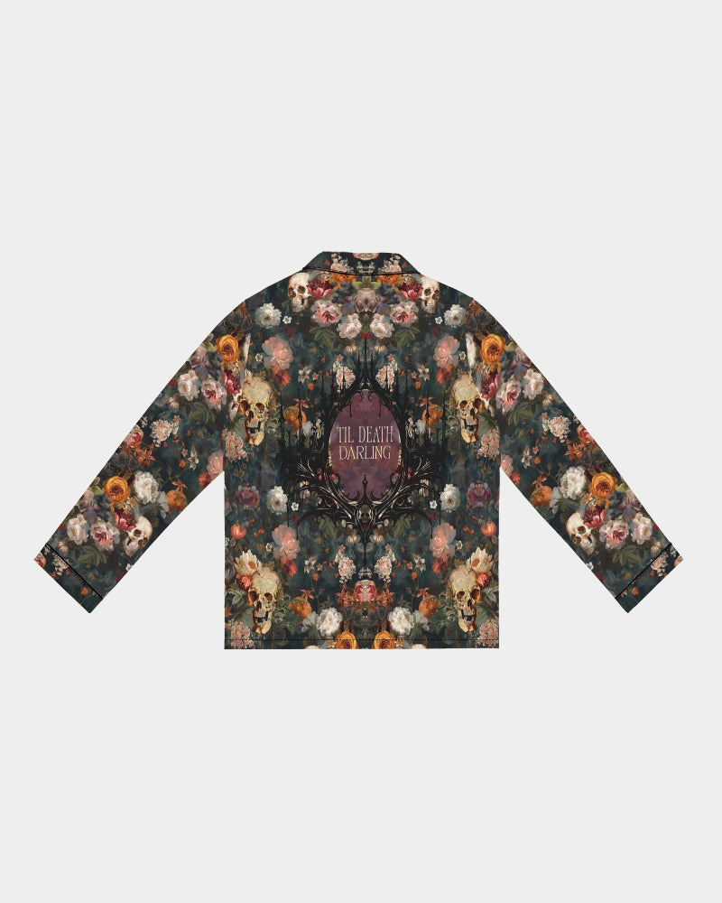Slip into the shadows with the Til Death Satin Pajama Top by Gilded Girl Accessories, the perfect loungewear for dark romance lovers, gothic bookworms, and BookTok babes who crave a touch of the macabre in their reading rituals.